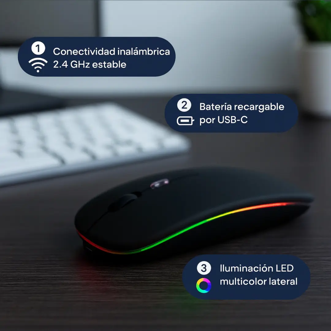 Mouse inalambrico recargable LED8 3200 DPI.